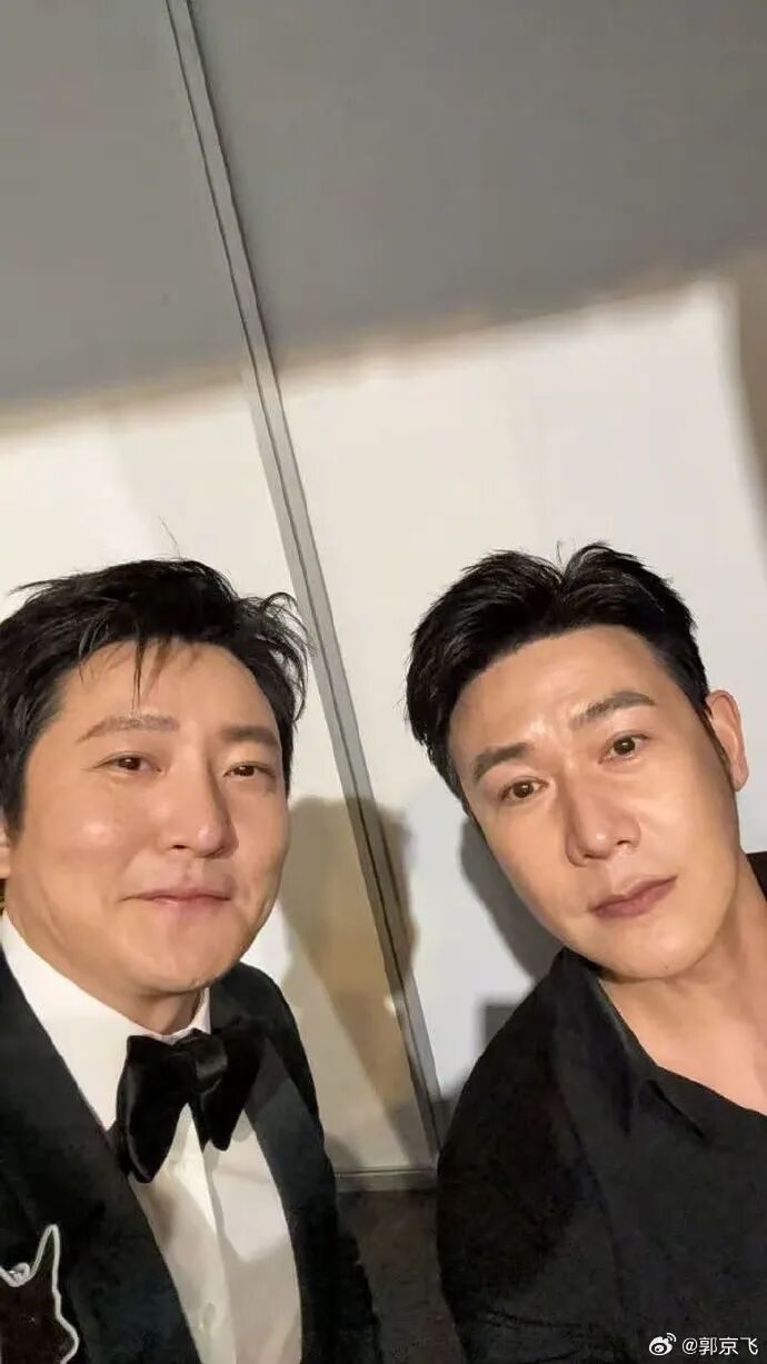 “如果一个家庭里面,能有一个像张建国一样那么细心那么护短那么操劳的姐夫那生活该多幸福啊,郭京飞是不是啊?或者有一个像崔国民这样的老舅,生活也是乐乐呵呵的”郭京飞在台下一脸狂笑。事后两人还发同框合照。